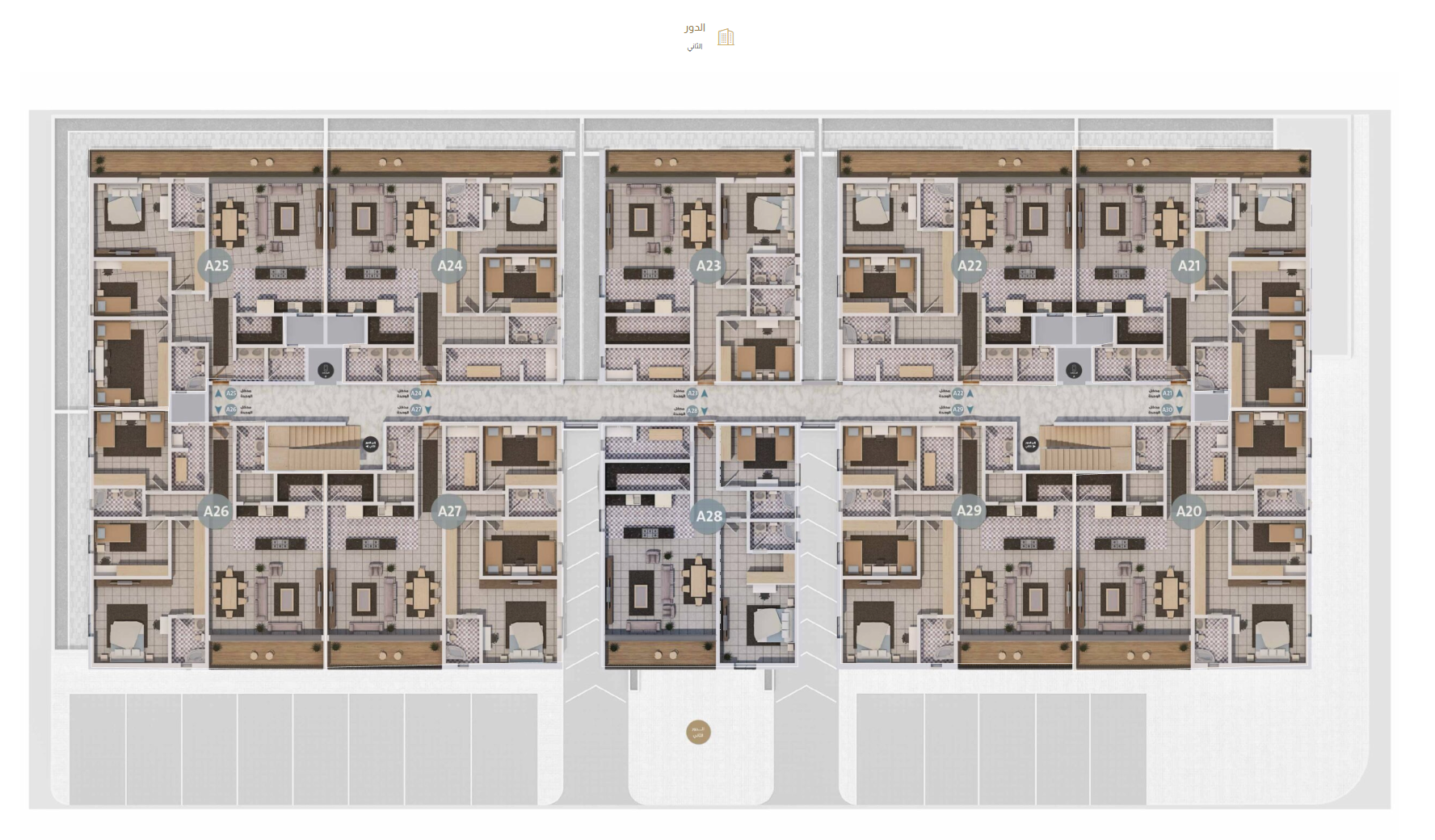 Al Ajlan Riviera 43 has a total of 19 units, starting from bed units. There are 19 types of floorplans starting from -1 sqm upto 170 sqm.